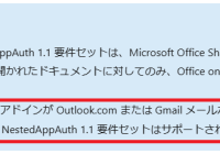 はじめに Outlook アドインの開発がローカル環境で一区切りついたので、テスト環境にデプロイするためにマニフェストファイルを変更したら、ドツボにはまってしまった件についてまとめてみました。 開発環境 OS:Hyper… 続きを読む »